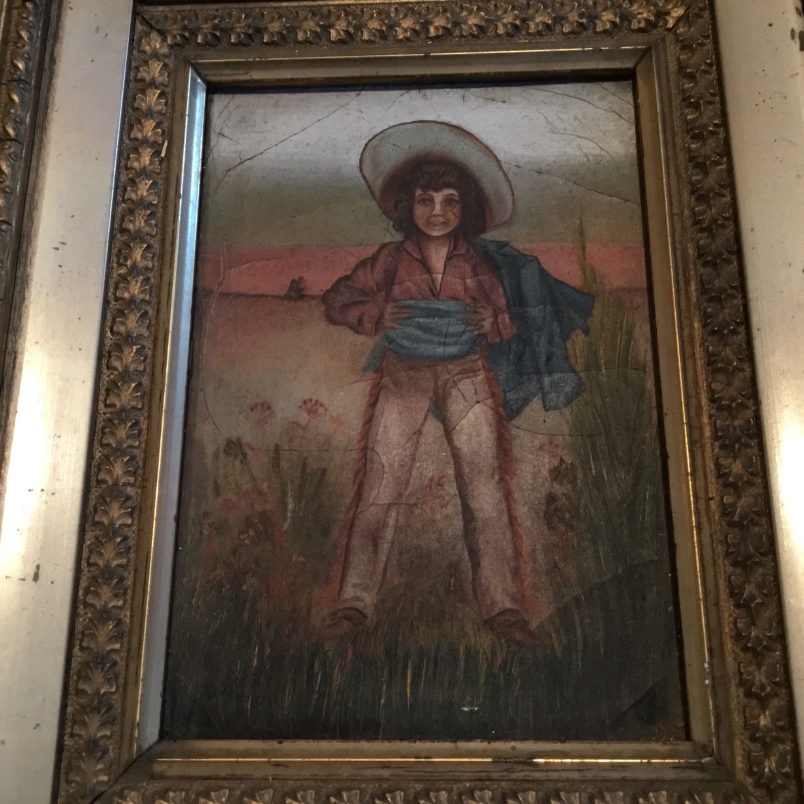 Title (ebay affiliate link): Antique 19th C American Folk Art Primitive Oil Painting Boy Cowboy Outfit AAFA