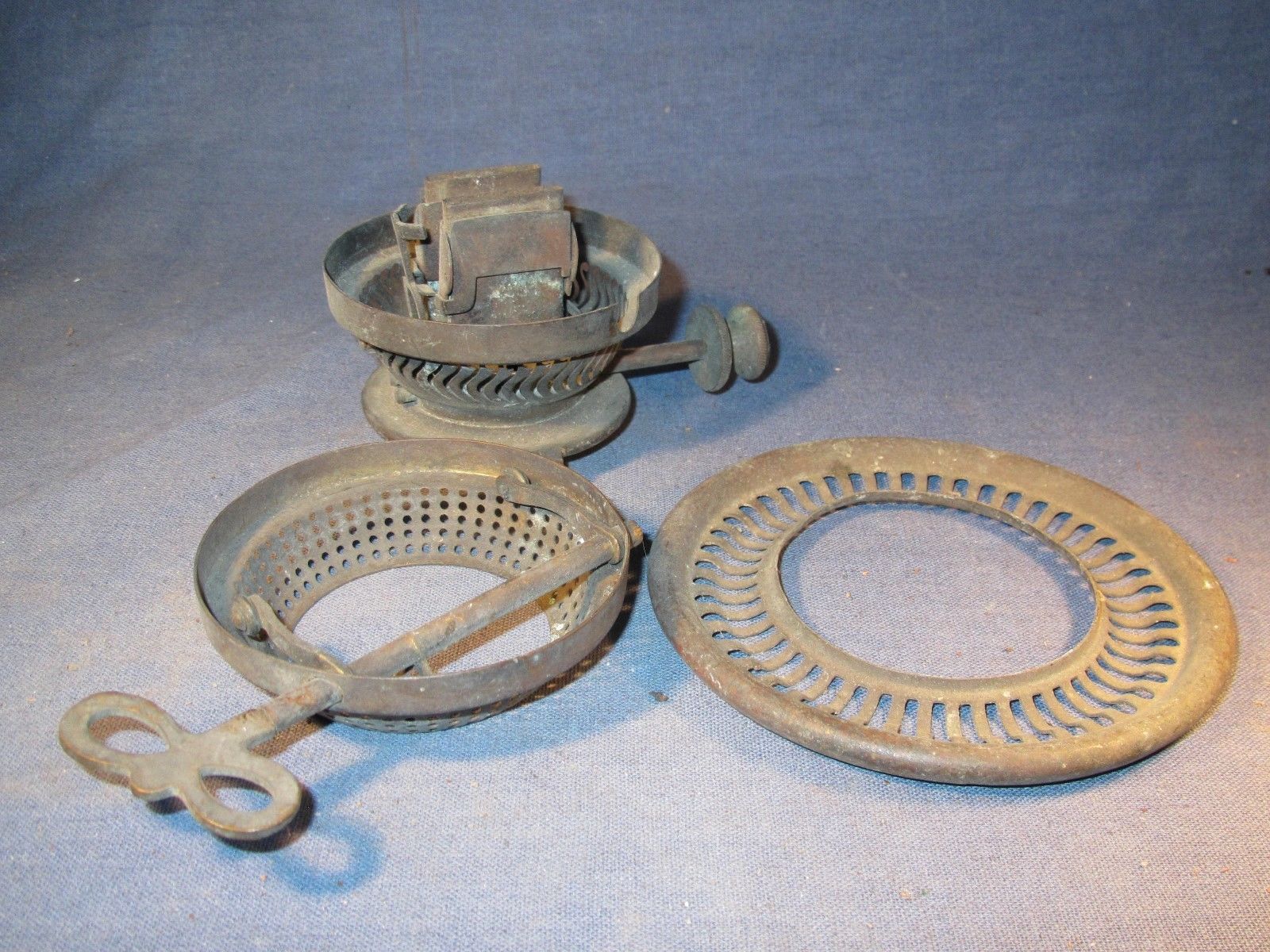 Old brass parts for oil lamp burners.