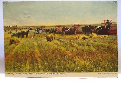 Title (ebay affiliate link): ''04 CN SOUV POSTCARD REAPING, INDIAN HEAD ASSA. CANADIAN PACIFIC RAILWAY FARMERS