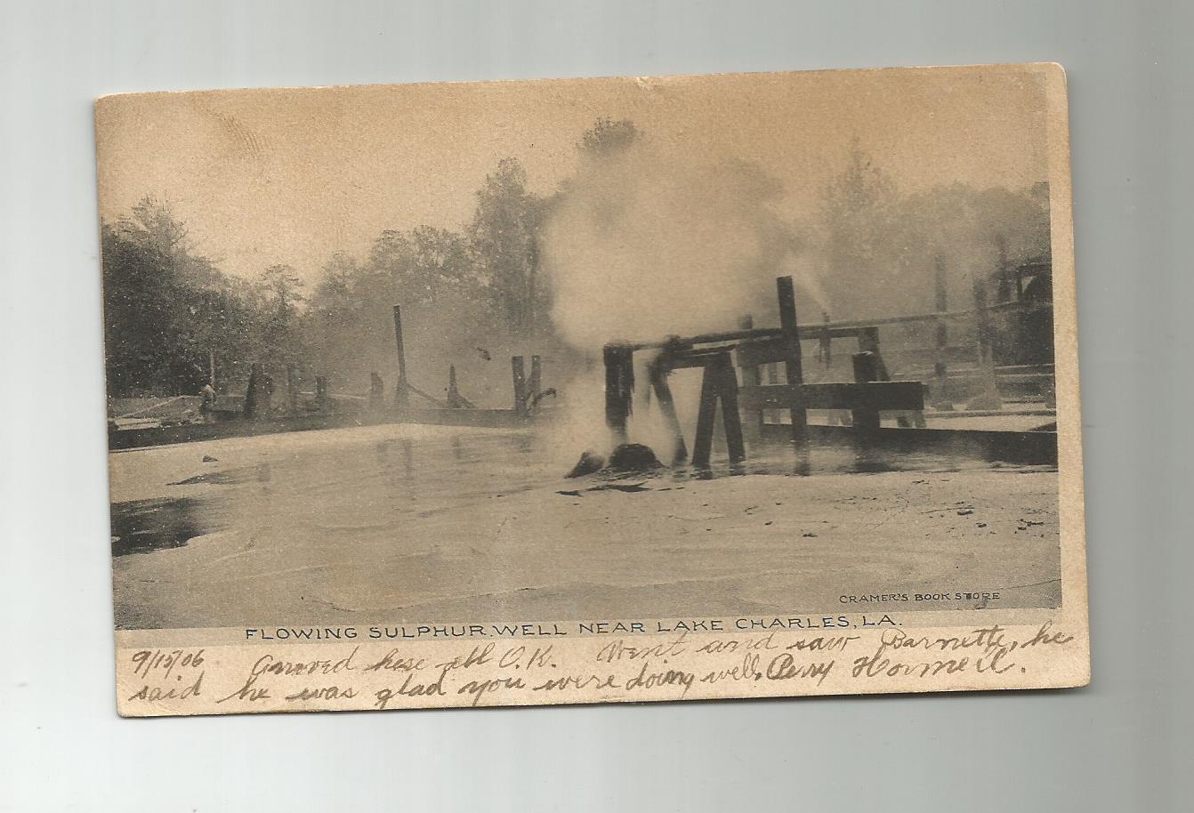 Title (ebay affiliate link): 1906 LAKE CHARLES LA FLOWING SULPHUR SULFUR WELL POSTCARD LOUISIANA