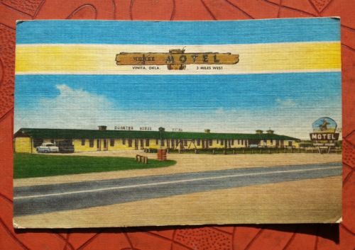 Title (ebay affiliate link): Vintage linen postcard of the Quarter Horse Motel, Route 66, Vinita, OK