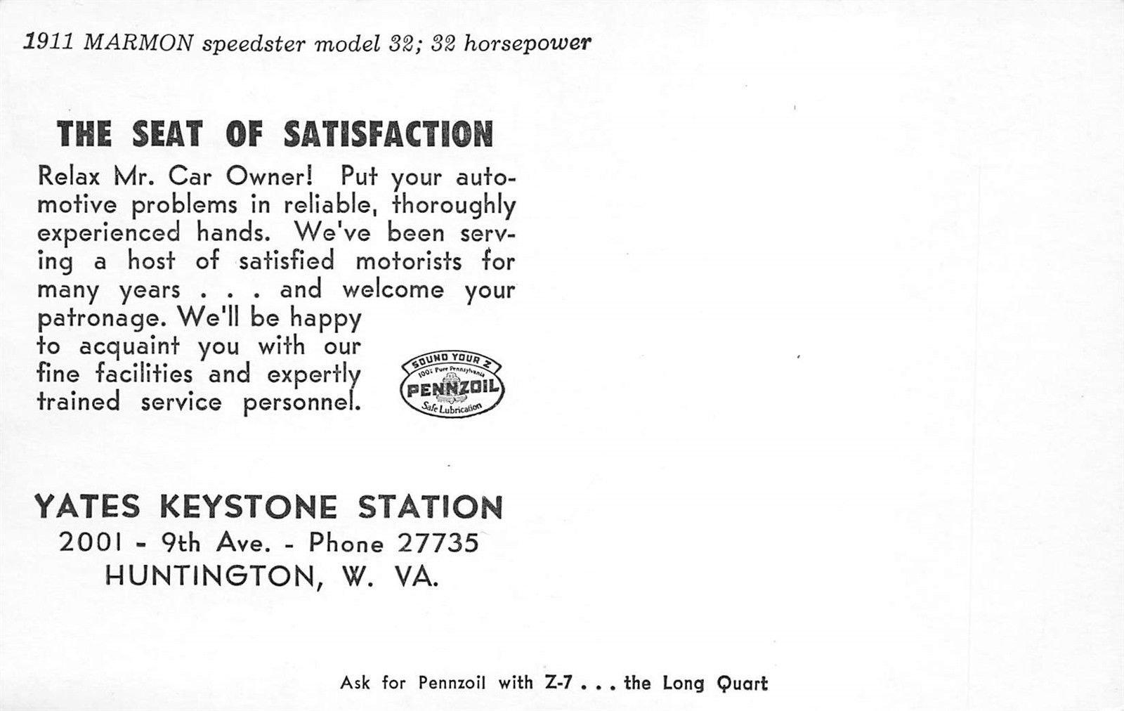 Huntington West Virginia 1960s Advertising Postcard Yakes Keystone Station