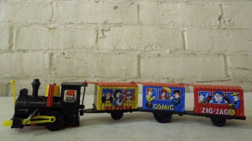 Title (ebay affiliate link): Vntg MTU Wind Up Western Comic ''Zig Zag'', Tin Toy Litho 11" Train, Korea ~ WORKS