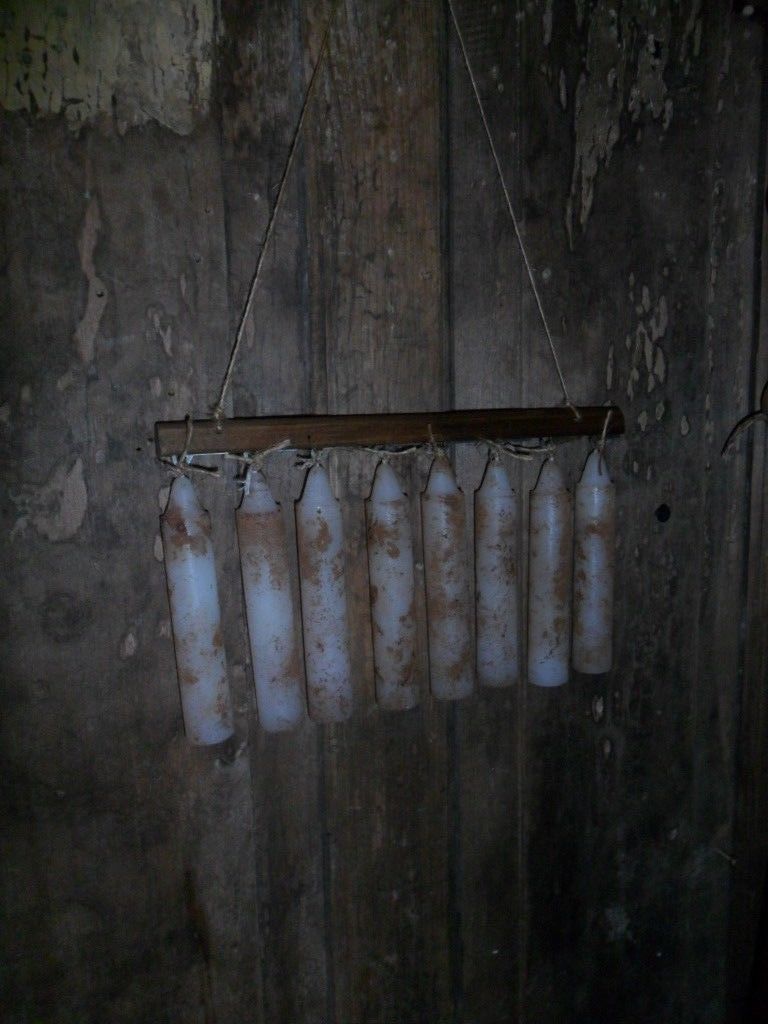 Title (ebay affiliate link): Primitive Drying Rack, (8) Homestead Grungy Candles, Farmhouse Early Look