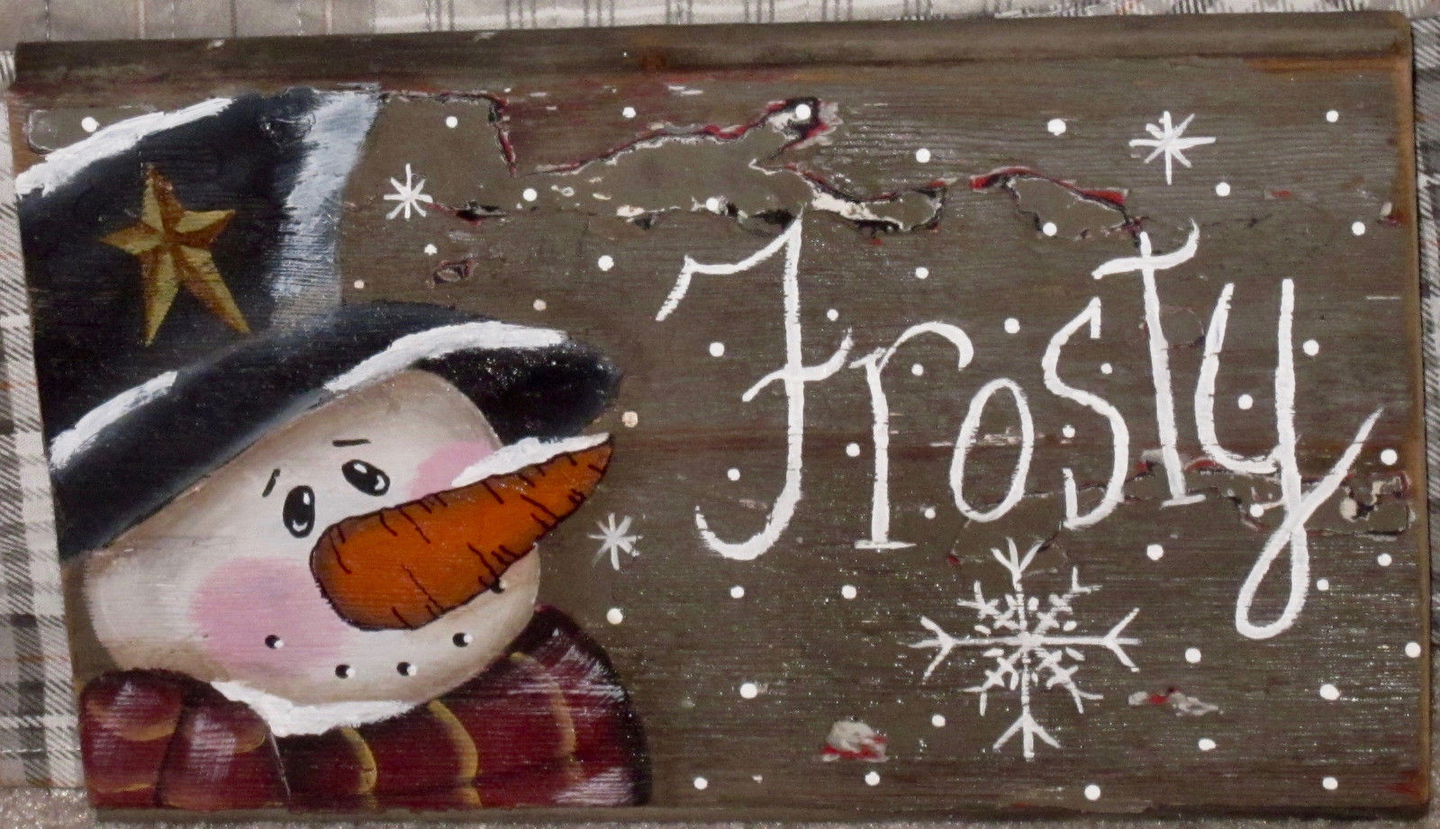 Title (ebay affiliate link): *~*PRIMITIVE*~* HP FOLK ART PRIM SNOWMAN *~* FROSTY *~* OLD RECLAIMED WOOD