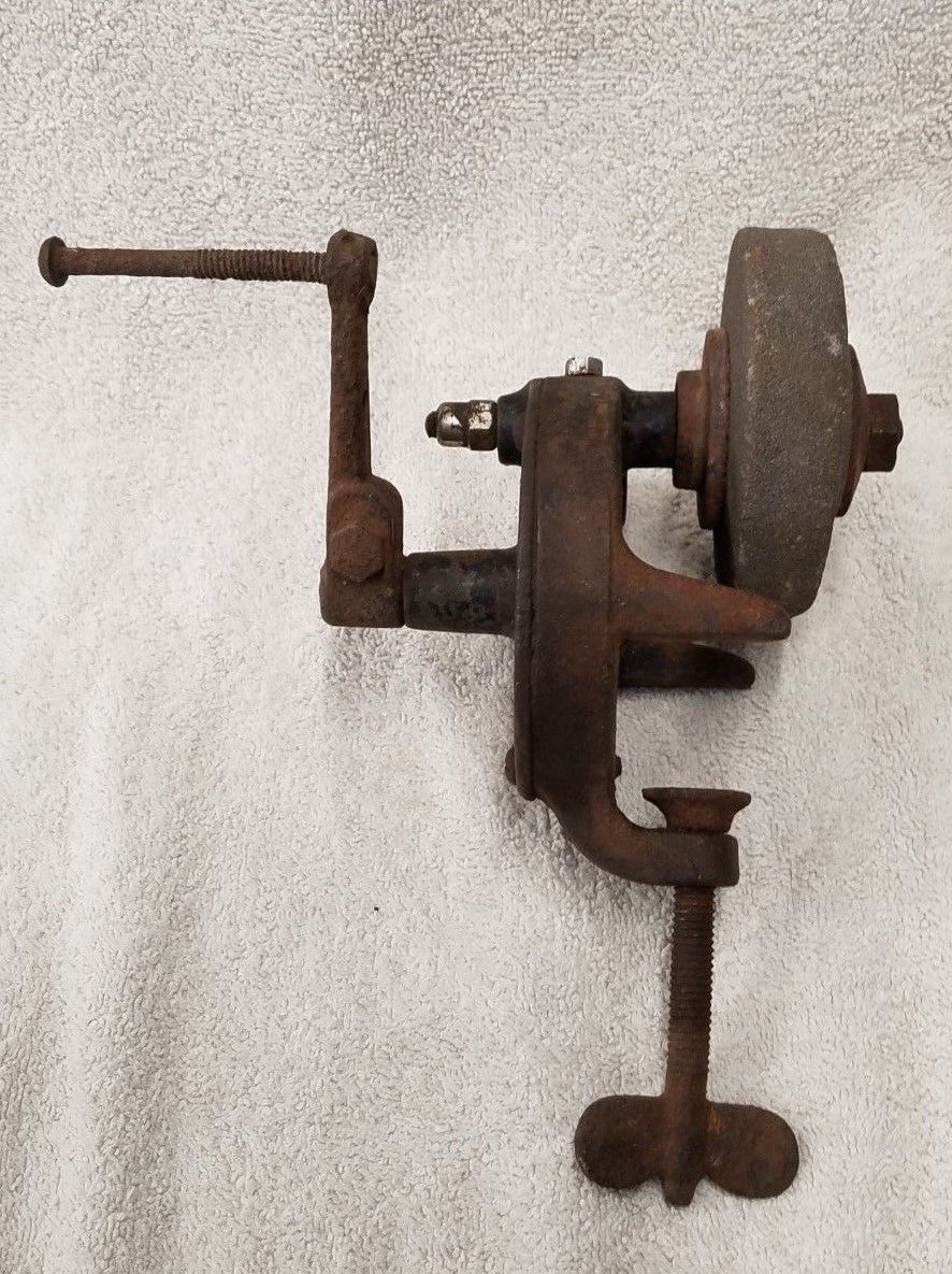 Title (ebay affiliate link): Vintage Hand Crank Bench Grinder Sharpener Wheel Grinder Bench Mount
