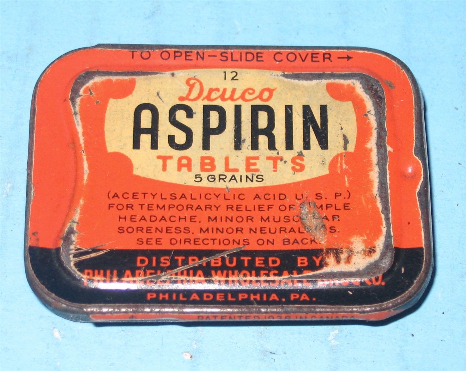 Title (ebay affiliate link): Druco Aspirin Tin 12 Tablet Slide Lid Medicine Tin Philadelphia RARE RARE RARE