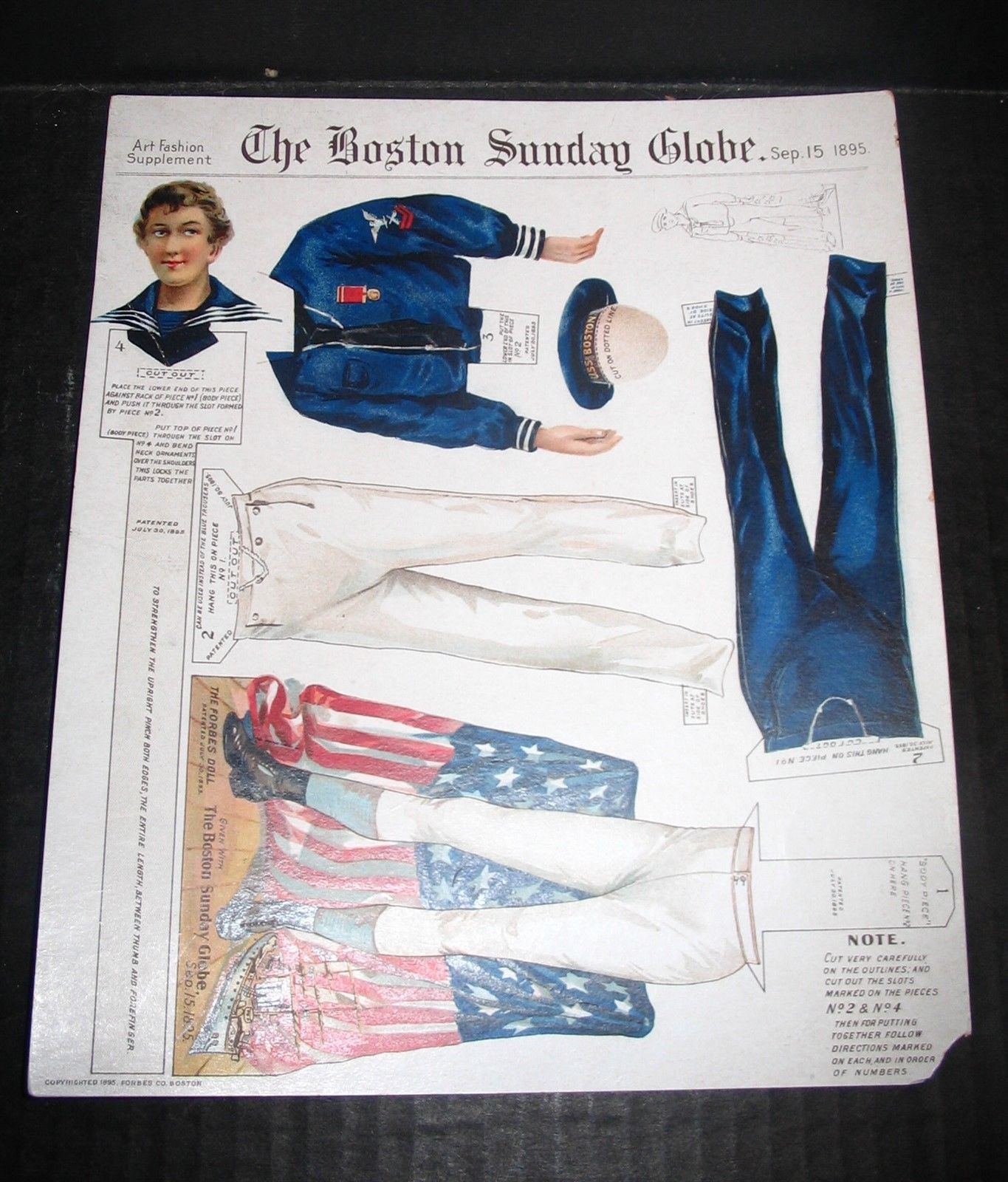 Title (ebay affiliate link): 1895 Boston Sunday Globe Newspaper US Sailor Paper Doll Premium Uncut Patriotic
