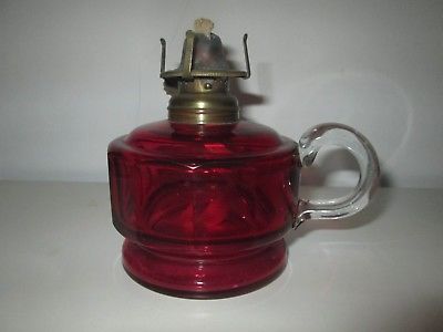 Antique Victorian Cranberry Glass Attic/Cellar/Yard Hand Held Oil Lamp