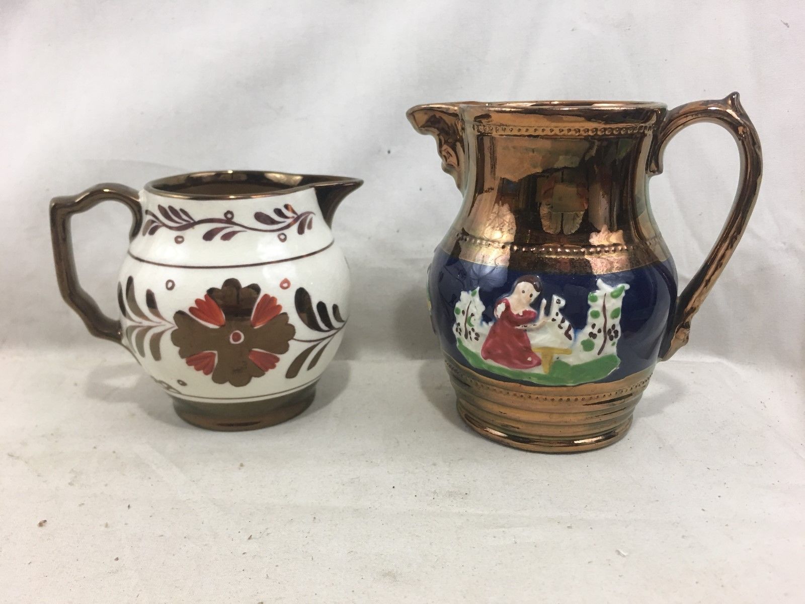 Title (ebay affiliate link): (2) Orig. English Antique & Vint. Copper Lustre Cream Jug Pitchers ~ Old Castle