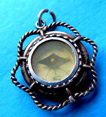 Title (ebay affiliate link): ANTIQUE TESTED SILVER WATCH CHAIN FOB,PENDANT,ROPE EDGE,MINIATURE COMPASS,SHIP