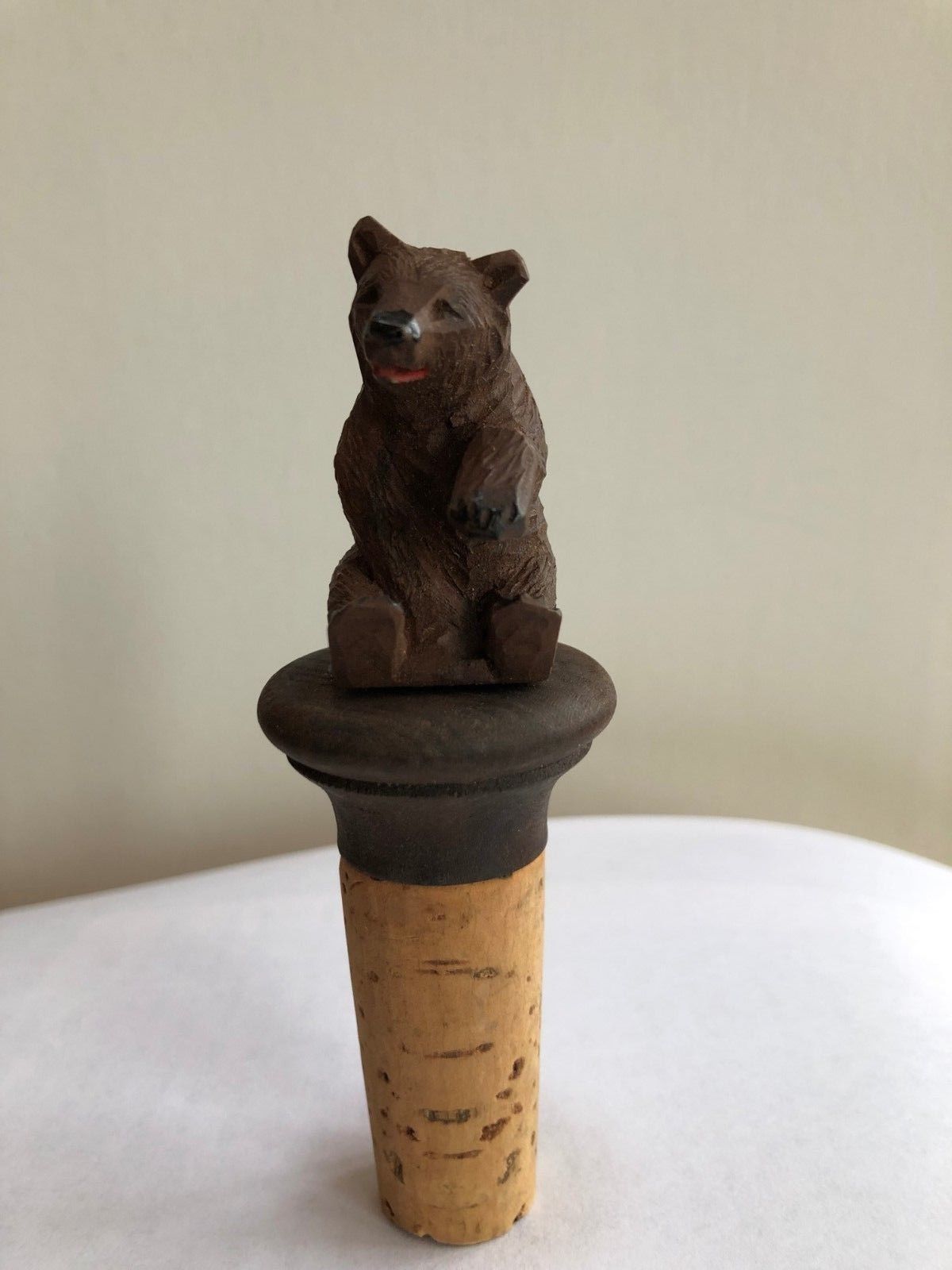 Vintage Carved Sitting Wooden Bear Cork Stopper Switzerland