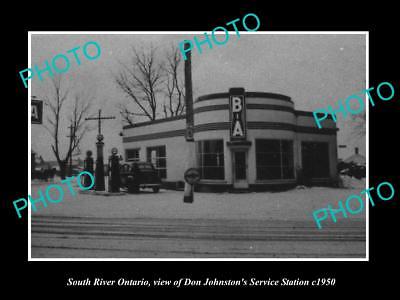OLD LARGE HISTORIC PHOTO OF SOUTH RIVER ONTARIO, JOHNSONS SERVICE STATION c1950