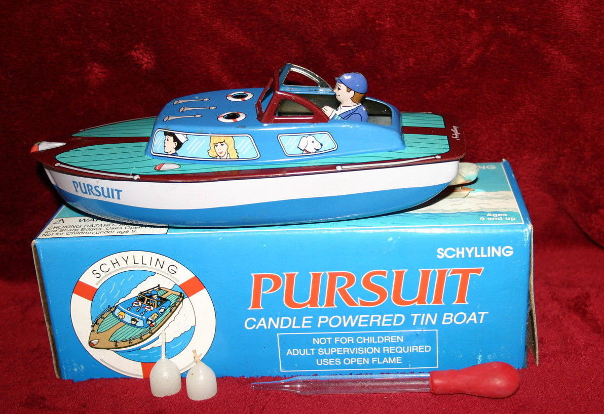 Title (ebay affiliate link): Toy Boat Schylling Candle Power Persuit Boat Tin Litho