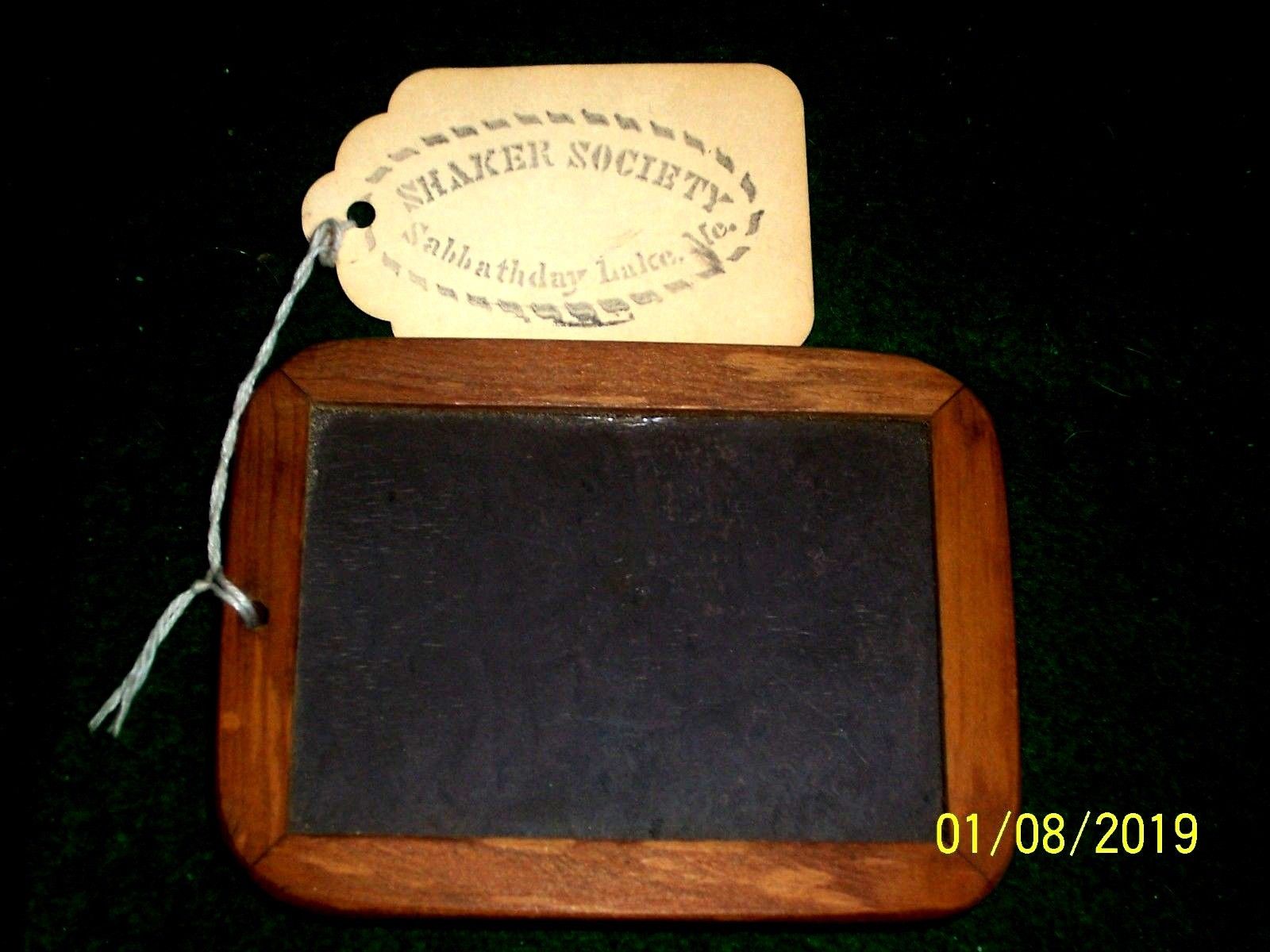 VINTAGE WOOD & SLATE MINIATURE 3" X 4" CHALK BOARD OLD TICKET READS SHAKER SOCIE