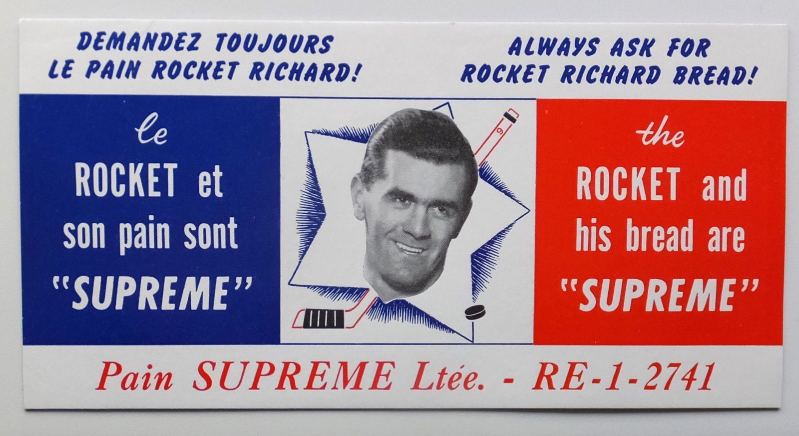 Title (ebay affiliate link): INK BLOTTER MAURICE RICHARD CANADIAN MONTREAL HOCKEY BREAD SUPREME 1950''S