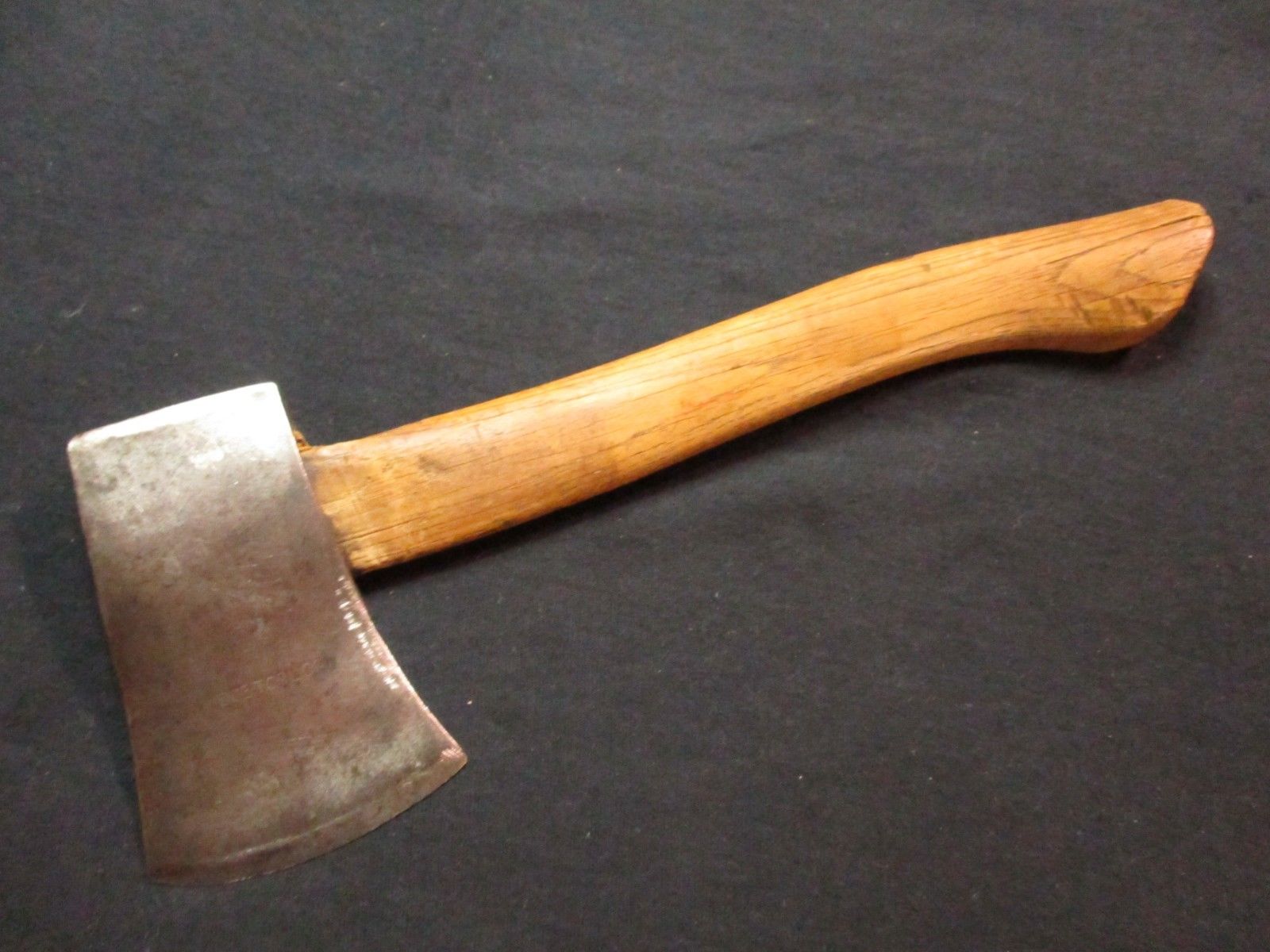 Title (ebay affiliate link): VINTAGE HATCHET/BRIDGE or RIDGE TOOL CO./3" CUT EDGE/WOODEN HANDLE/CAMP HATCHET