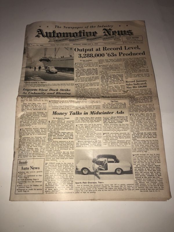 Title (ebay affiliate link): 1963 Vintage Automotive News Newspaper Of The Industry Car Automobile