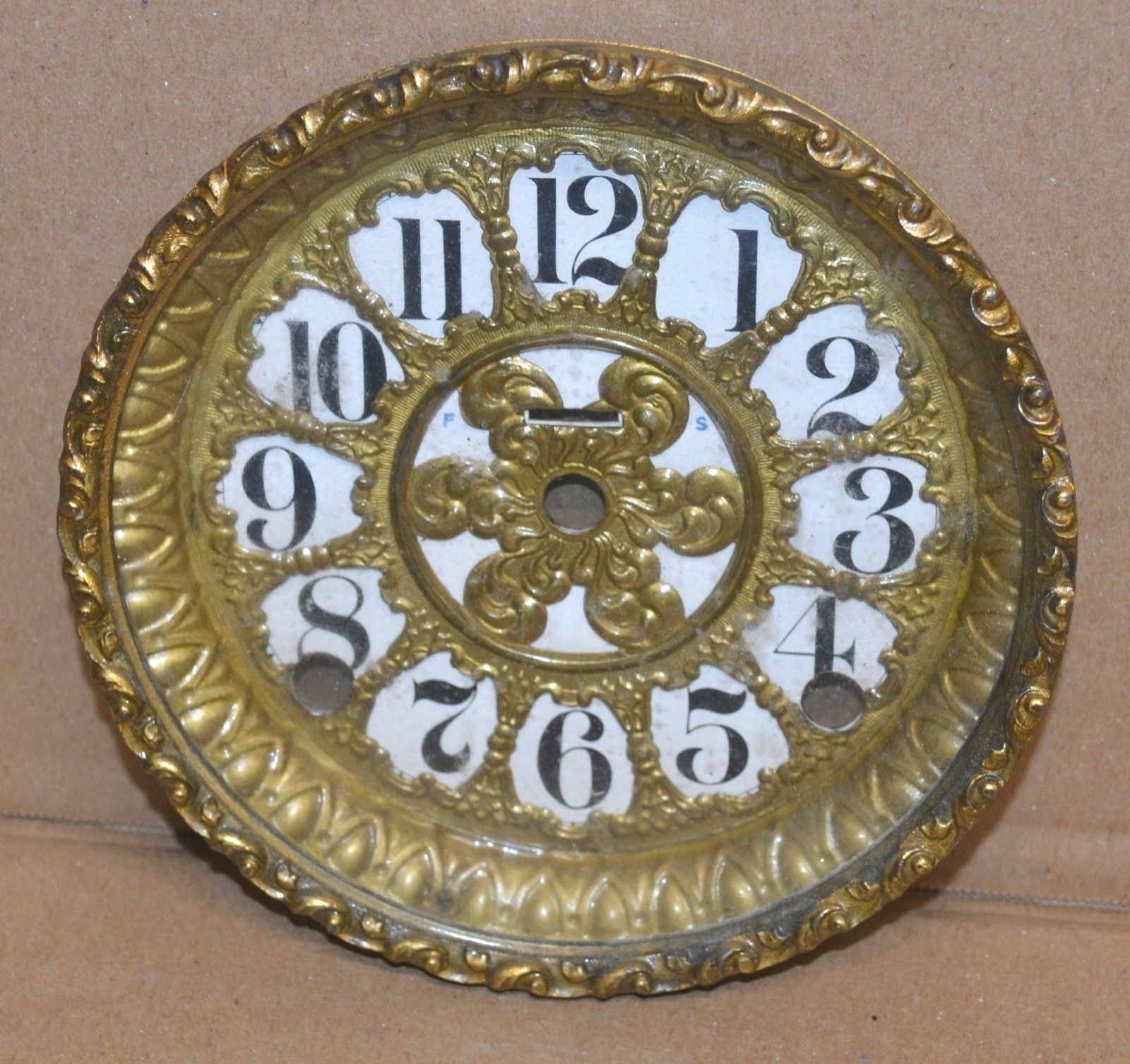 Antique E. Ingraham 8 Day Time Strike Pierced Brass Clock Dial & Bezel Assembly