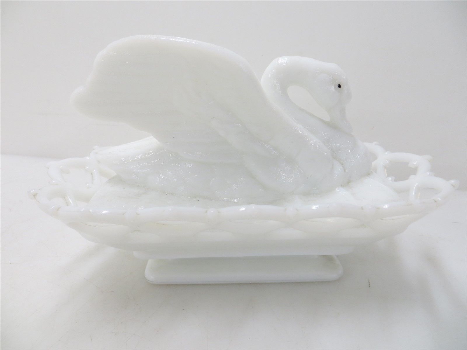 Vintage By Westmoreland Milk Glass Swan Candy Dish W/Lid