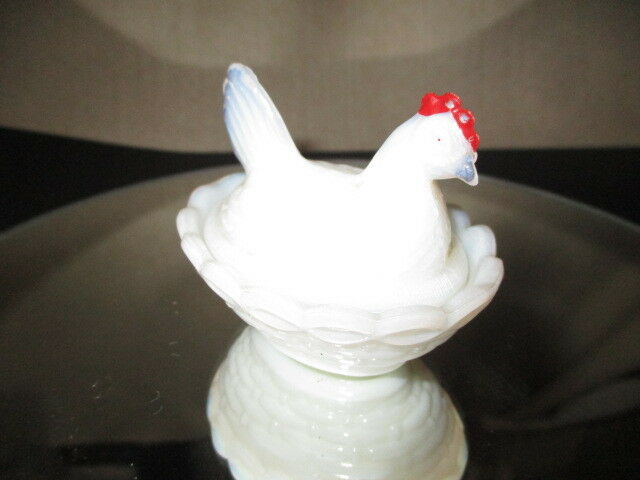 VINTAGE HEN ON NEXT OPEN SALT MILK GLASS