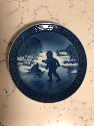 Title (ebay affiliate link): Royal Copenhagen Plate Denmark Blue White Little Skaters 1965 Very Anthropologie