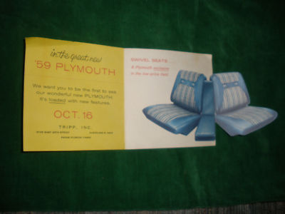 Title (ebay affiliate link): Plymouth 1959 swivel seats advert Fold Out Seats Card
