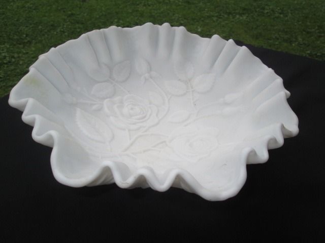 3 IN 1 RIMMED BOWL MILK GLASS BUT WHITE CUSTARD GLASS IMPERIAL OPEN ROSE