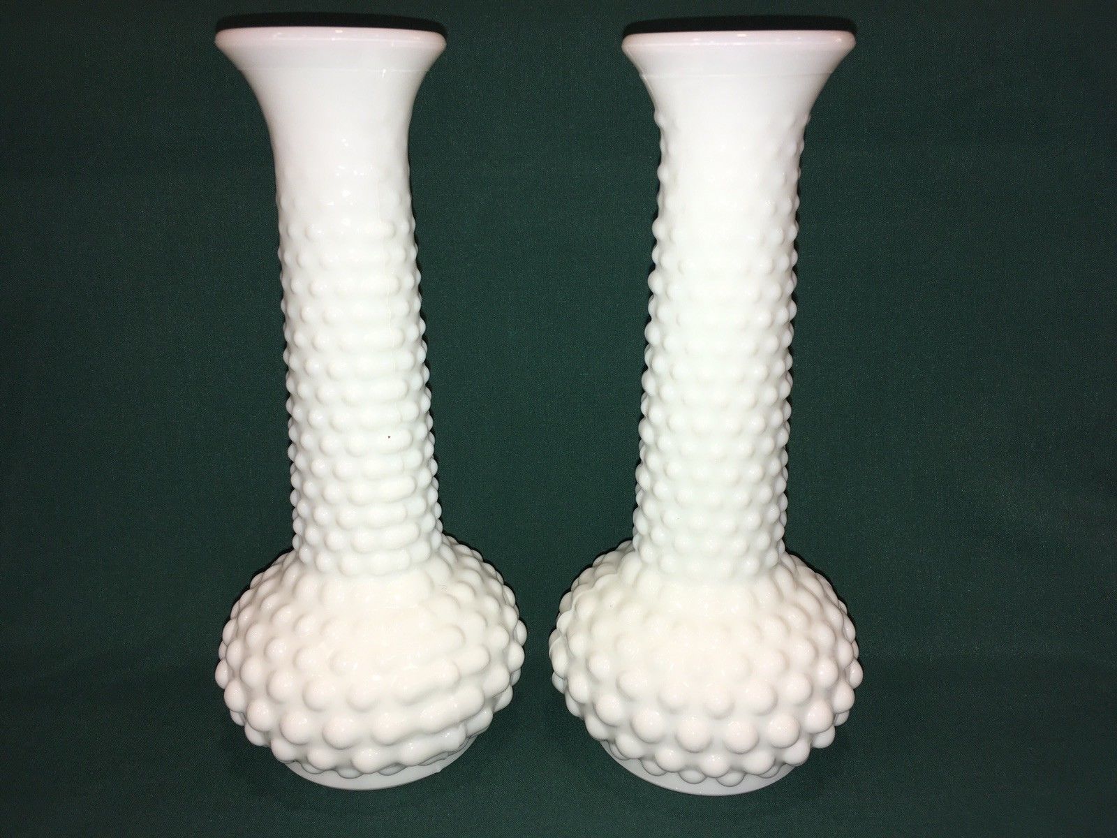Title (ebay affiliate link): Set of 2 WHITE Milk Glass VASES EO Brody BUD FLOWER Hobnail 7 1/2 GLOBE BASE
