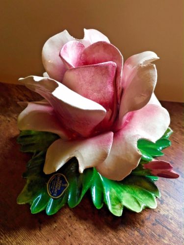 Title (ebay affiliate link): Vtg-Nuova-Capodimonte-Pink-ROSE-FLOWER from-Italy-N-Crown Marked