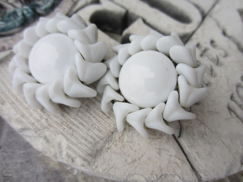 Title (ebay affiliate link): Vintage MIRIAM HASKELL White Milk GLASS Cluster Bead Flower Button EARRINGS