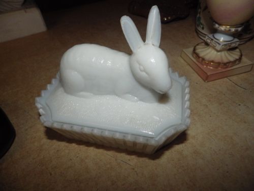 Title (ebay affiliate link): ANTIQUE WESTMORELAND MILK GLASS RABBIT ON NEST EUC 5.25"X5" NESTING BOWL DISH
