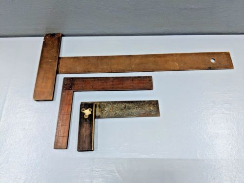 Title (ebay affiliate link): 3 Lot Vintage Antique Carpenter Square Wood, Brass, T Square
