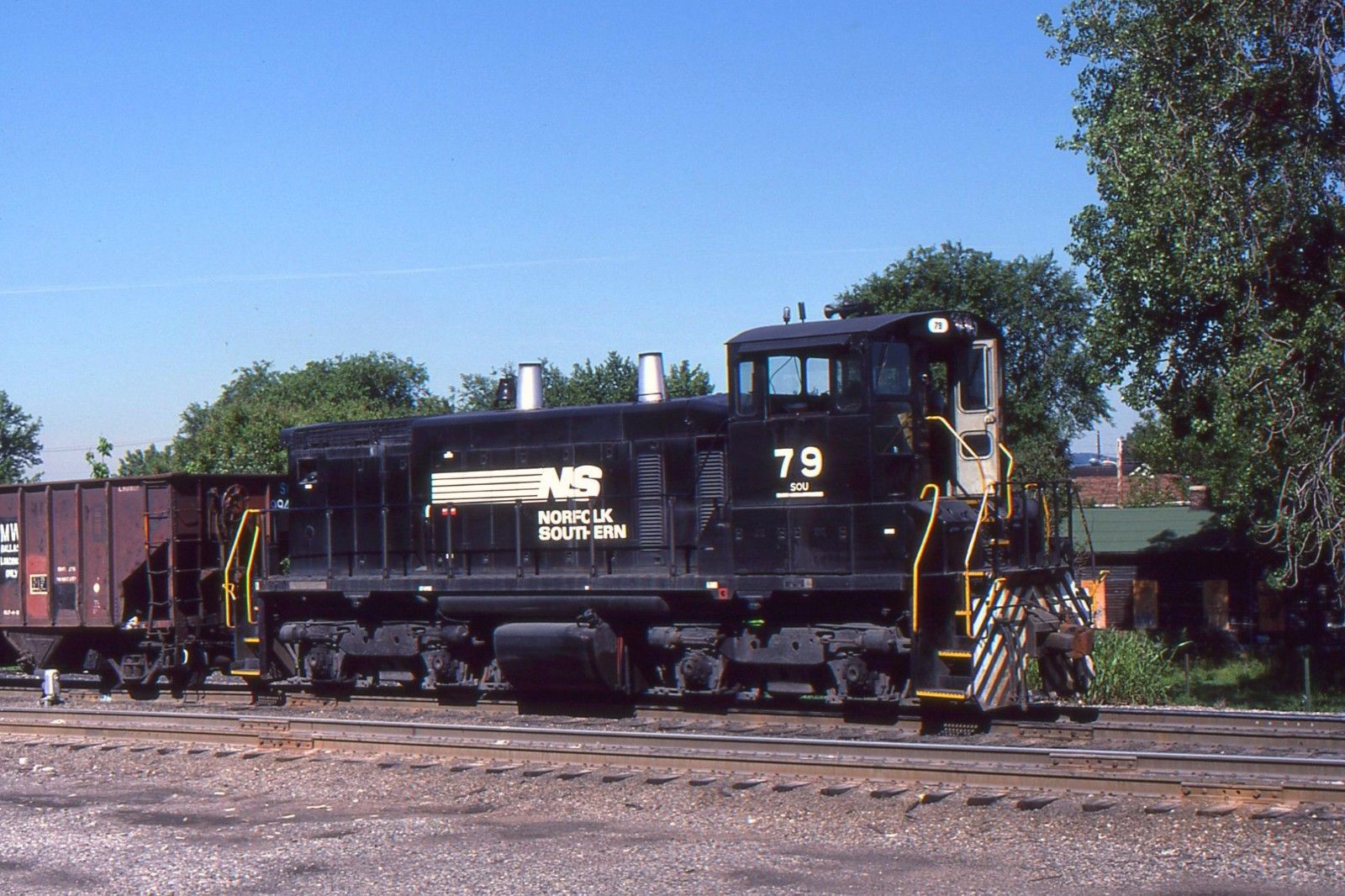 Original slide-Norfolk Southern SW1500 #79 & Train/ Louisville,KY.1990-Nice!