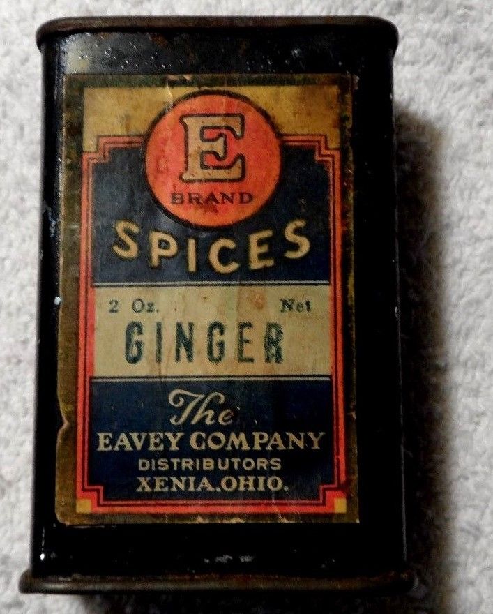 Title (ebay affiliate link): E BRAND SPICES GINGER 2 OZ.EAVEY CO.XENIA,OHIO TIN W/PAPER LABEL 2 OZ.