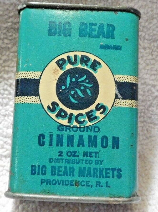 Title (ebay affiliate link): SPICE TIN 2 0Z "BIG BEAR BRAND CINNAMON BIG BEAR MARKETS PROVIDENCE,R.I. NM