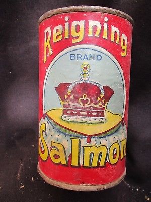 Title (ebay affiliate link): Antique Salmon Tin Can + Paper Label Reigning Brand Canada