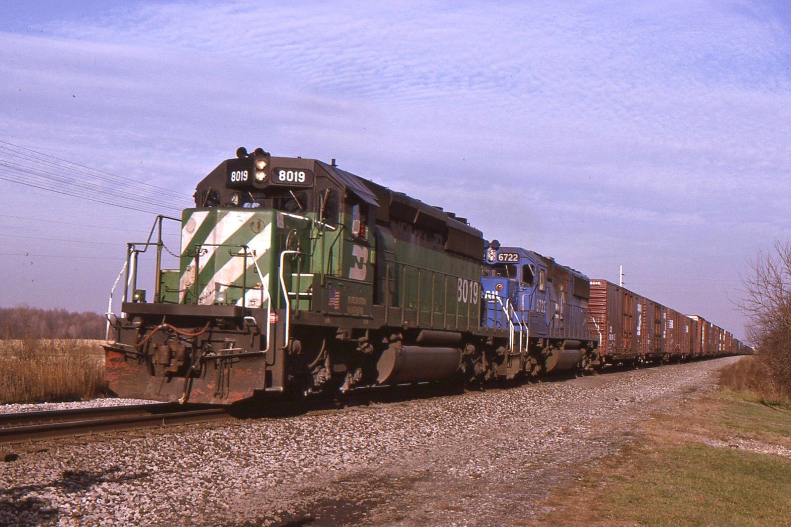 Title (ebay affiliate link): Original slide-Burlington Northern SD40-2 #8019 & Train/ New London,OH.''92-Nice!