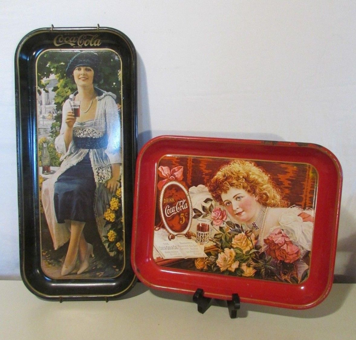 Title (ebay affiliate link): Coca Cola Trays LOT 1973 Girl Blue Hat ~1975 Hilda Clark Girl w/ Roses ~COKE