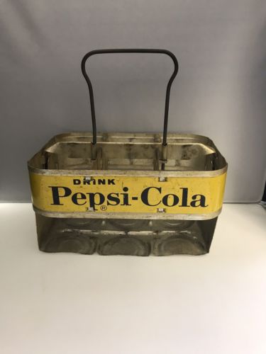 VINTAGE 1950s DRINK PEPSI COLA METAL 6 PACK CARRIER BOTTLE HOLDER ADVERTISING