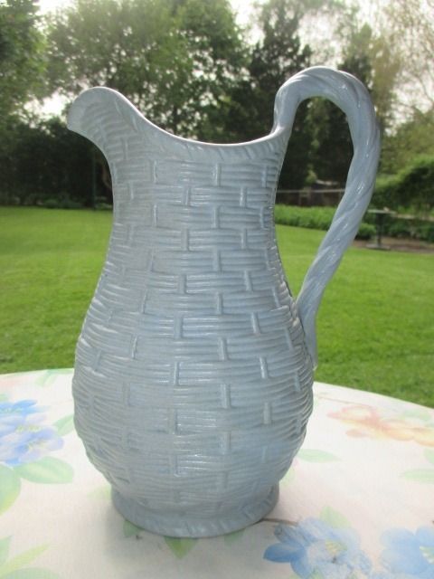 Title (ebay affiliate link): ANTIQUE VICTORIAN EARLY DUDSON CARP BLUE SALT GLAZE PITCHER JUG BASKETWEAVE
