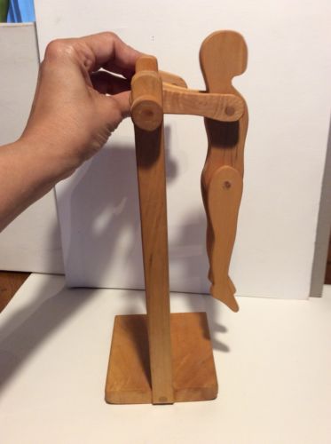Title (ebay affiliate link): Vintage Wood Turn handle Horizontal bars movement human figure toy