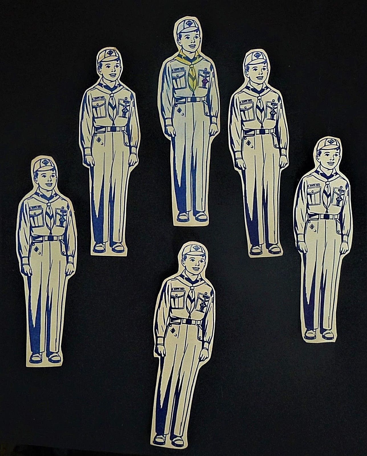 Lot of 6 VINTAGE 1950''s CUB SCOUT PAPER DOLL CUT OUTS FOR COLORING