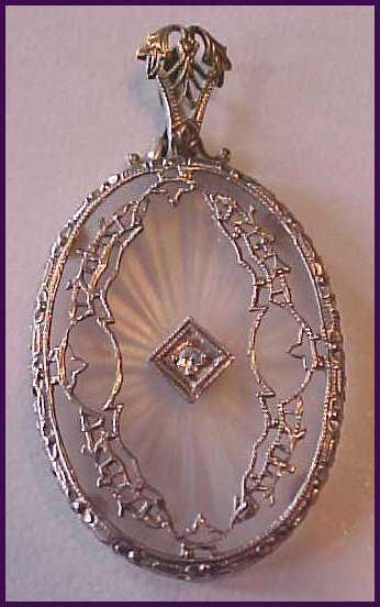Title (ebay affiliate link): ANTIQUE "ART DECO" FILIGREE 14KT GOLD CRYSTAL PENDANT