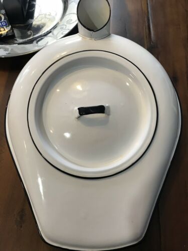 Title (ebay affiliate link): White Black Porcelain Enamel Bed Pan Urinal w/ Lid Chamber Pot Col