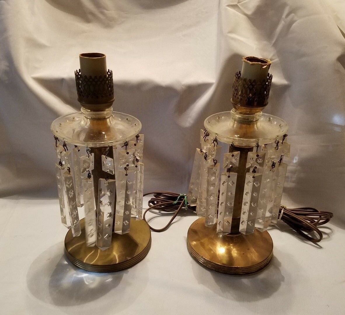 Vintage Pair of Decorative Brass Lamps w/ Dangle Prisms