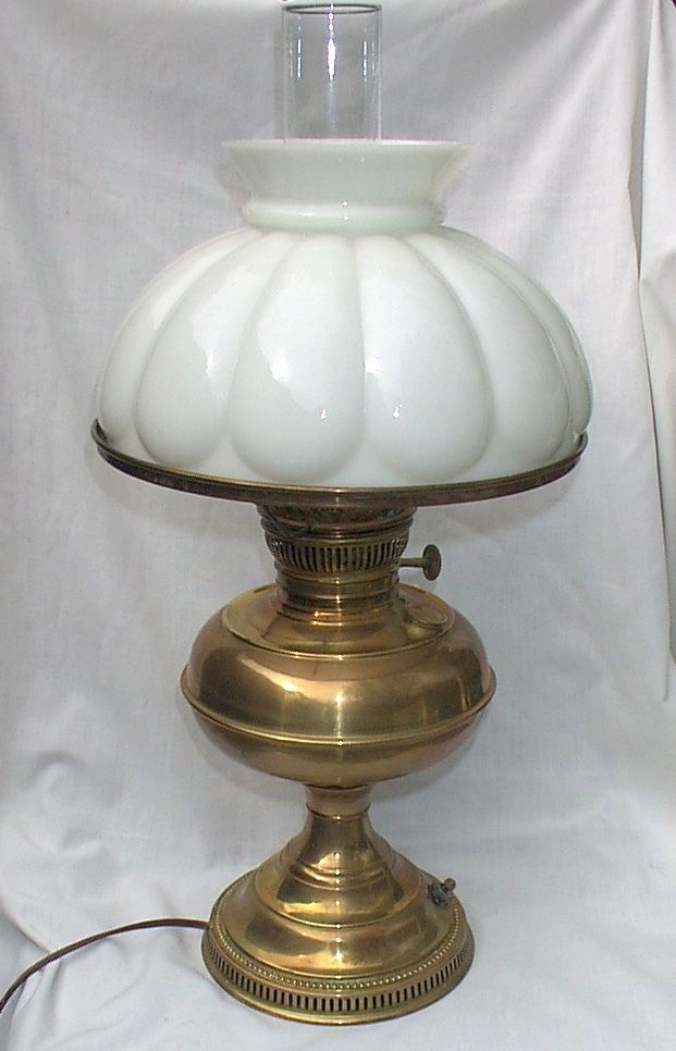 Antique Brass Rayo Electric Lamp Lantern And Melon Shade