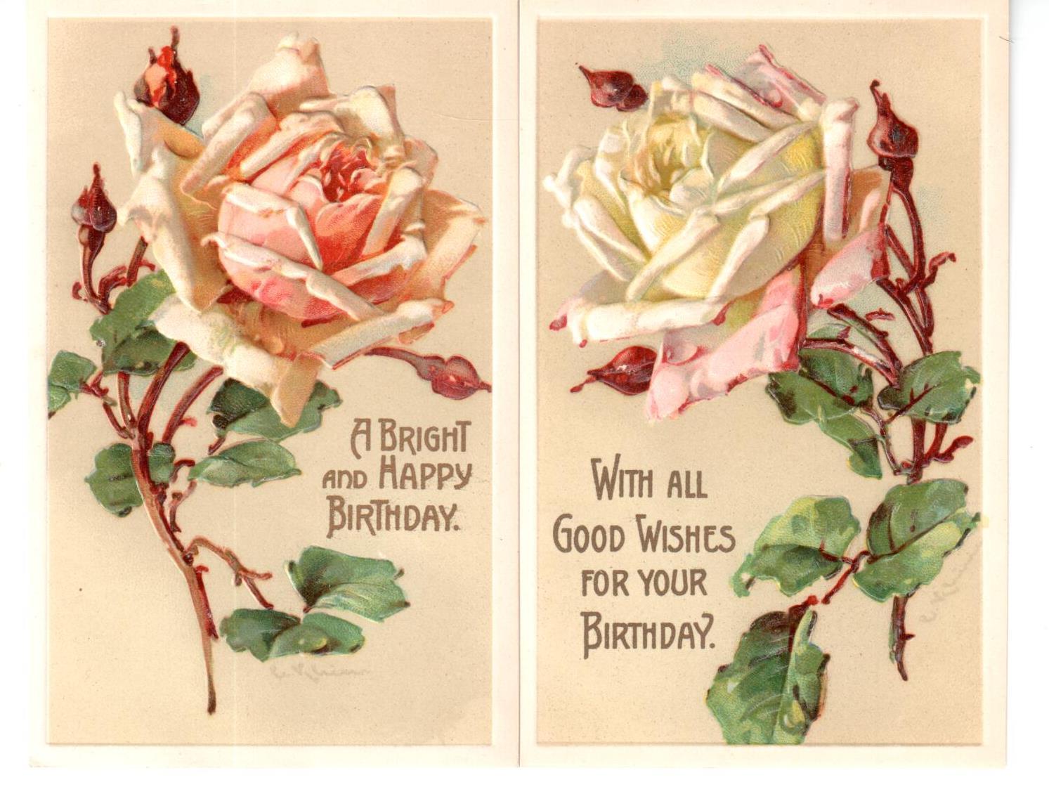 LOT: 2 VINTAGE CATHERINE KLEIN BIRTHDAY ART POSTCARDS PINK & YELLOW ROSES