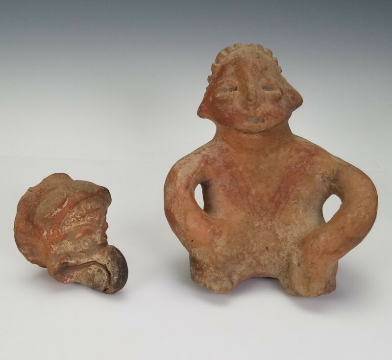 Title (ebay affiliate link): AUTHENTIC ANTIQUE PRE-COLUMBIAN POTTERY SEATED FIGURE & BIRD HEAD