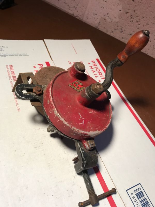Antique Hand Crank Bench Mount Grinder Vintage Knife Sharpener 4'''' Wheel Diam.